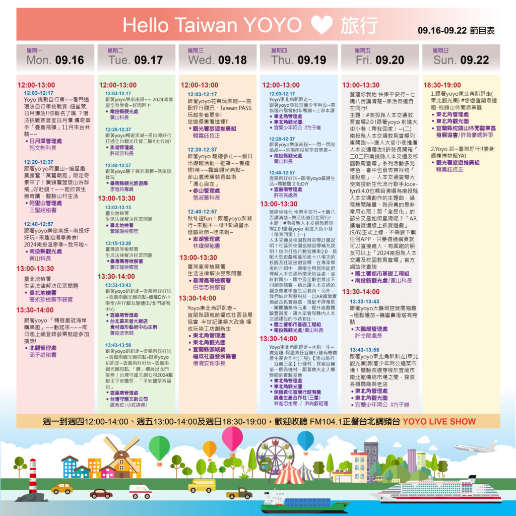 【觀光】yoyo Live Show每週觀光節目表