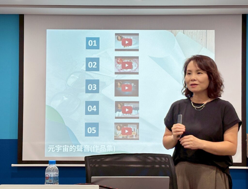 作為iOS系統第一代華語語音助理專屬配音員,盧怡君老師提到Siri的錄製與大部分配音工作不同,文稿不是很多很多的單字而是一句句完整的句子,但每一句話都毫不相干讓人一頭霧水,錄音時也不需要設立場景、不需要角色扮演、甚至不需要情緒,就是要你很平淡的錄完。而語音配音只是台灣配音工作中的其中一項,商業廣告、戲劇、卡通、教材、有聲書、電玩,生活中需要聲音出演的地方比我們想像的要多,老師也在課堂中播放了她的元宇宙聲音作品集,有年輕媽媽、抱著洋娃娃的小女孩、征戰沙場的將士等,在完成這些專業作品前也有過許多的失敗,並引用德國哲學家尼采所說:「殺不死我的,使我更強大。」鼓勵大家在聲音產業持續耕耘。