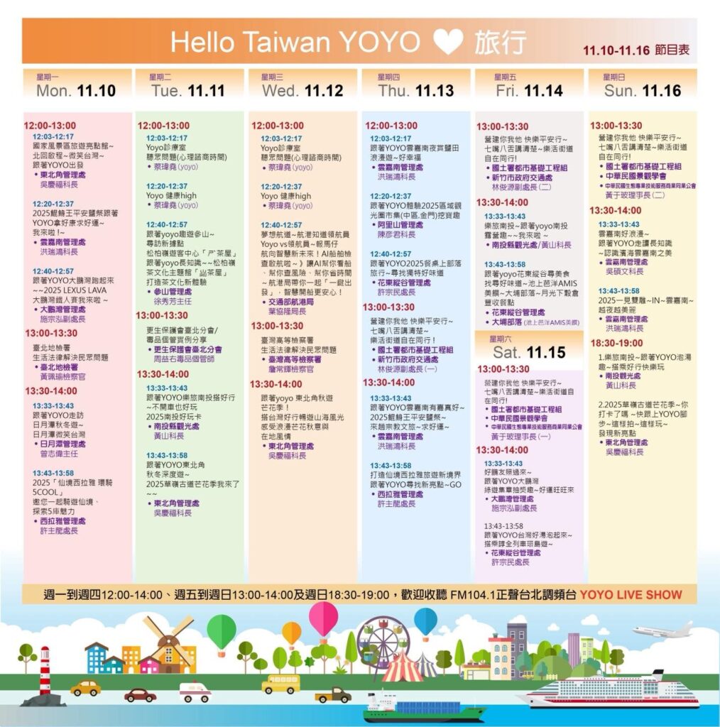 更多旅遊內容敬請鎖定台北調頻台 FM104.1 Yoyo Live Show『堯堯趴趴走,給你玩透透』單元,每週一到週四中午12點到下午2點、週五下午1點到2點及週日下午6點半到7點,豐富內容等你來探索粉絲團也上線啦,趕快來按讚!
