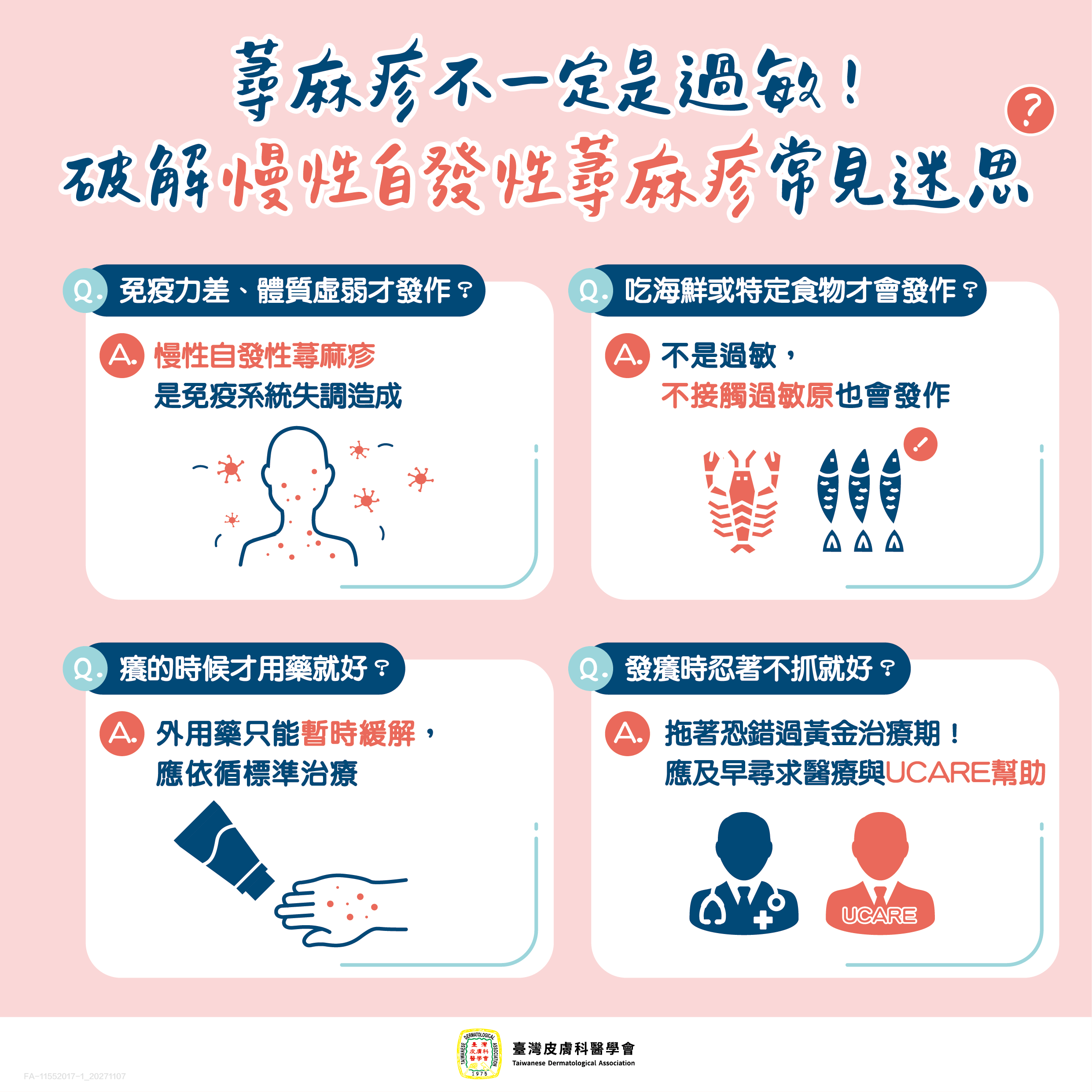破解慢性自發性蕁麻疹常見迷思(圖/臺灣皮膚科醫學會提供)