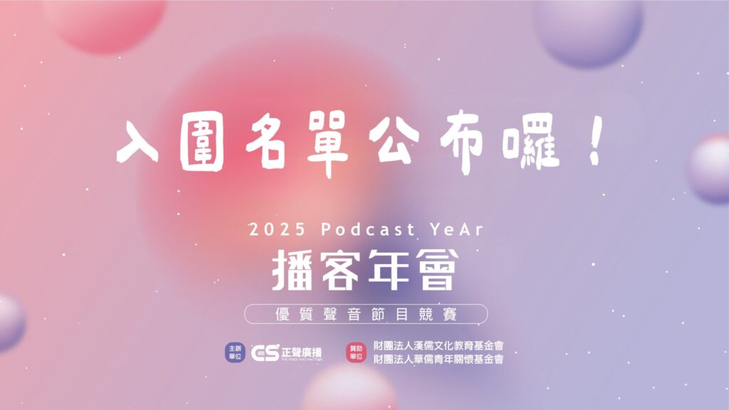 【正聲訊】2025 Podcast YeAr播客年會優質聲音節目競賽作品徵選 入圍名單