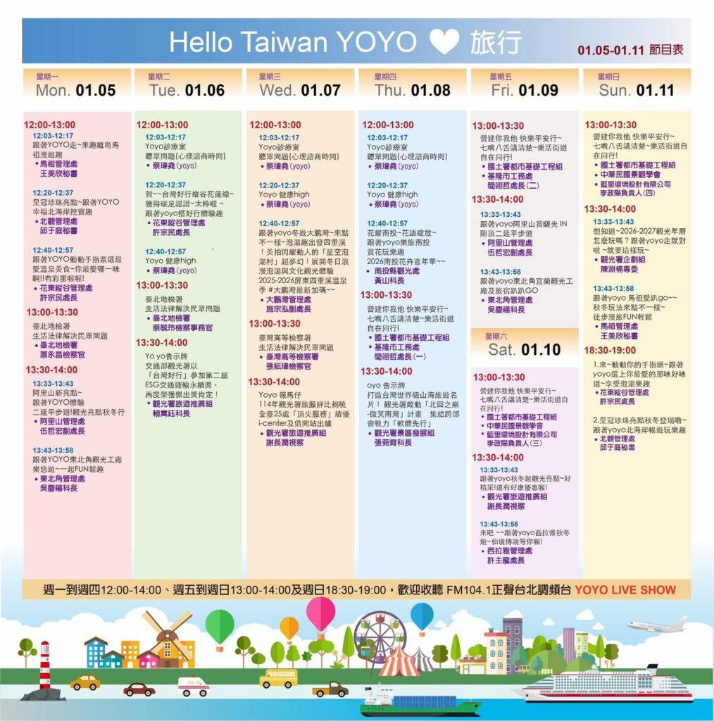 更多旅遊內容敬請鎖定台北調頻台 FM104.1 Yoyo Live Show『堯堯趴趴走,給你玩透透』單元,每週一到週四中午12點到下午2點、週五下午1點到2點及週日下午6點半到7點,豐富內容等你來探索粉絲團也上線啦,趕快來按讚!