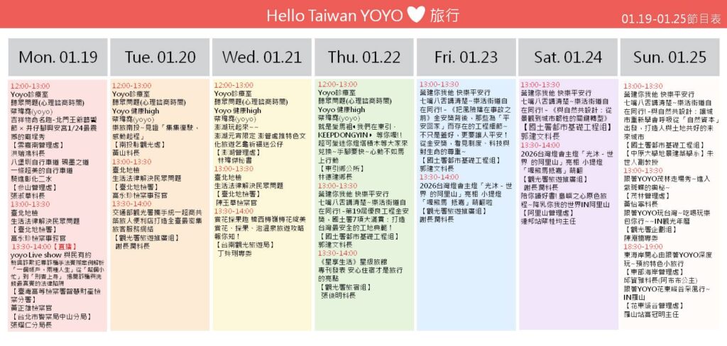 【觀光】yoyo Live Show每週觀光節目表