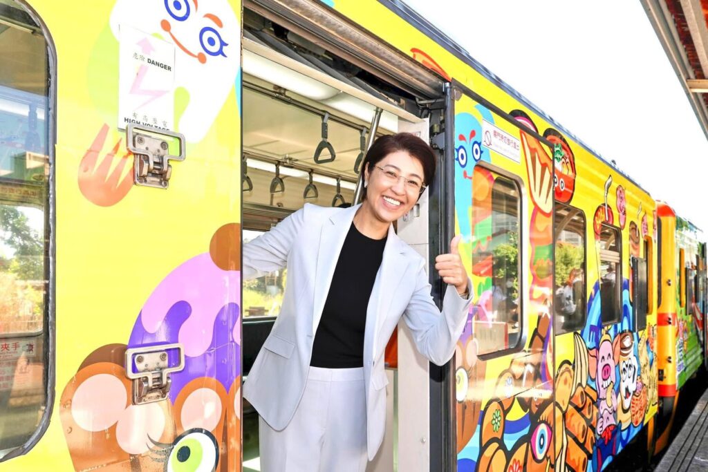 科長:這次復駛特別與遊知名藝術家洪易老師合作「集集彩繪列車」,洪易將集集線周邊元素納入獨特設計風格,大膽繽紛的色彩,將集集特產山蕉、石虎以及南投山色轉化為充滿活力的幾何圖騰,展現出重生的喜悅與生命力。台鐵也加速趕工,拚暑假前全線復駛。