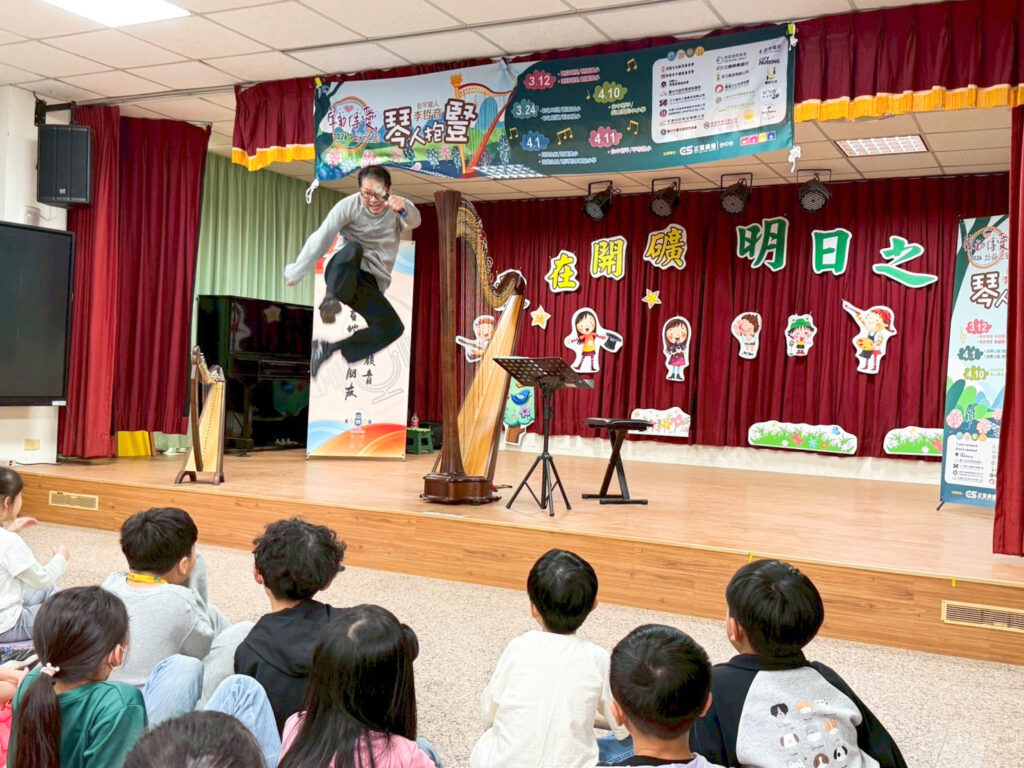 正聲台中台「2026聲動傳愛-琴人抱豎」偏鄉巡迴音樂會,4月1日前往苗栗縣公館鄉開礦國小與南河耶拿實驗小學。當豎琴樂聲奏下,劃破山城寧靜的不只是一首首耳熟能詳的樂曲,還有孩子們歡樂純樸的笑聲。