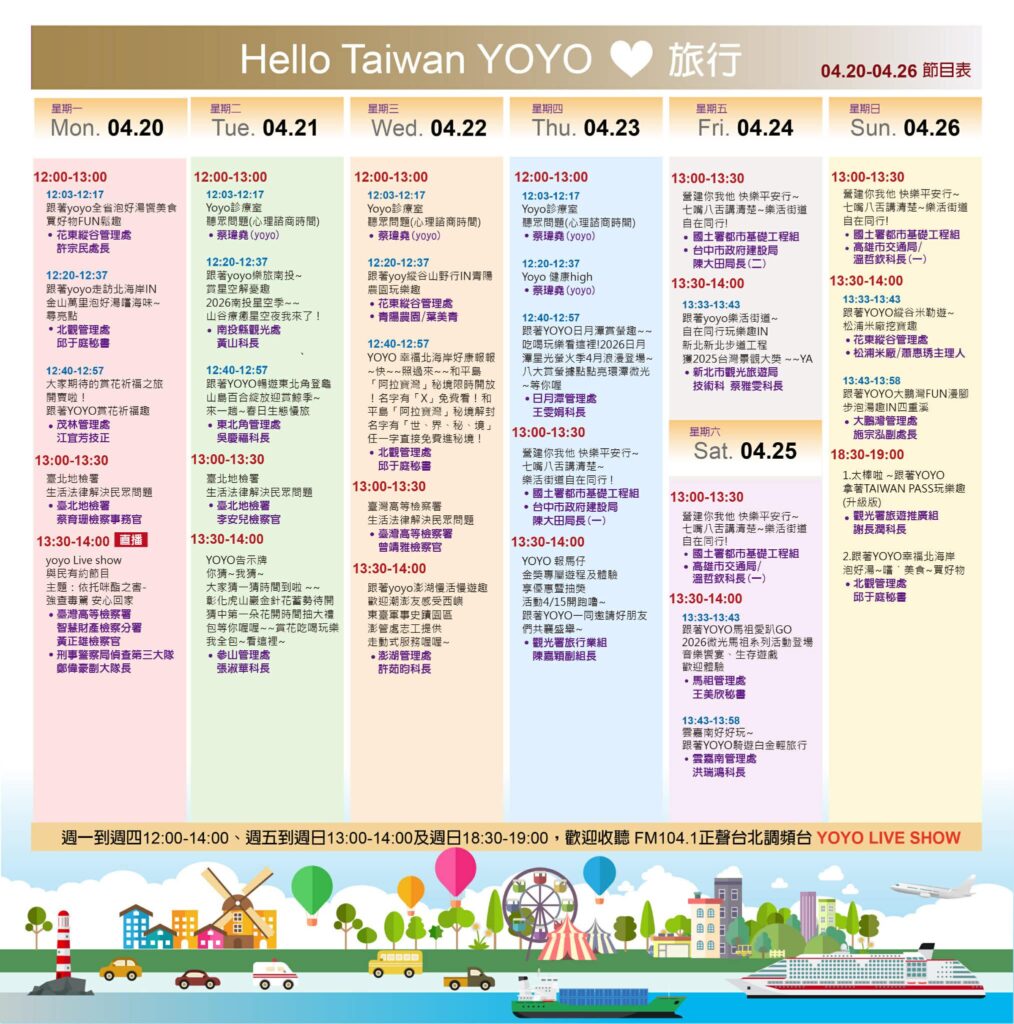 【觀光】yoyo Live Show每週觀光節目表