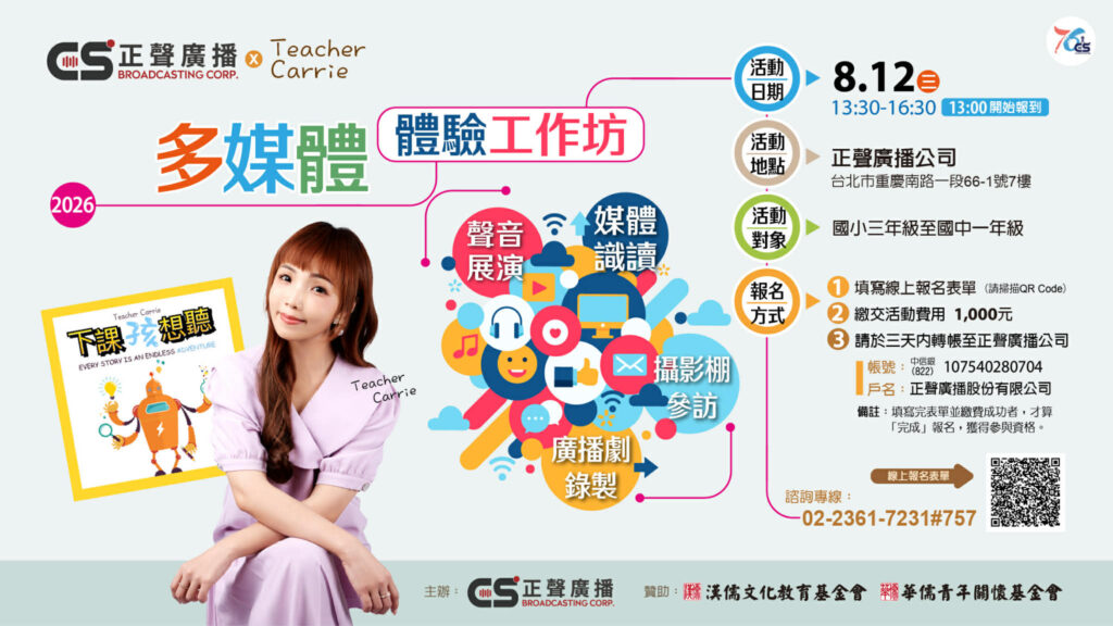 【台北訊】正聲 x Teacher Carrie 雙語多媒體體驗工作坊開放報名囉!