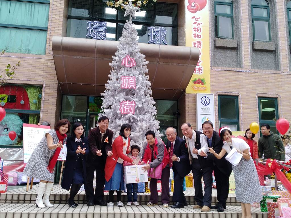 環球科技大學董事長許淑敏與校長陳益興,幼兒園韋明淑執行長帶領幼保系學生與幼兒園小朋友,圓家扶孩童一個希望、一個夢想,延續第12年的環球耶誕心願樹,共募集2000份計100萬元的耶誕禮物。在雲林縣議員賴淑娞、縣府廖英彤秘書、斗六市長謝淑亞、教育處科長黃淑真、馬來西亞中化中學彭進財校長、馬來西亞樂樂讀書中心蘇麗瑩院長、台塑高級管理師周家任、台灣省國際蘭馨交流協會張玉璿會長等共同代表贈送下,由雲林家扶陳燦勳主委、前主任龐雨辰與廖志文主任代表受贈,環球師生以續接力的方式將心願禮物送上幸福專車,將社會大眾滿滿的愛,傳送給家扶兒童。