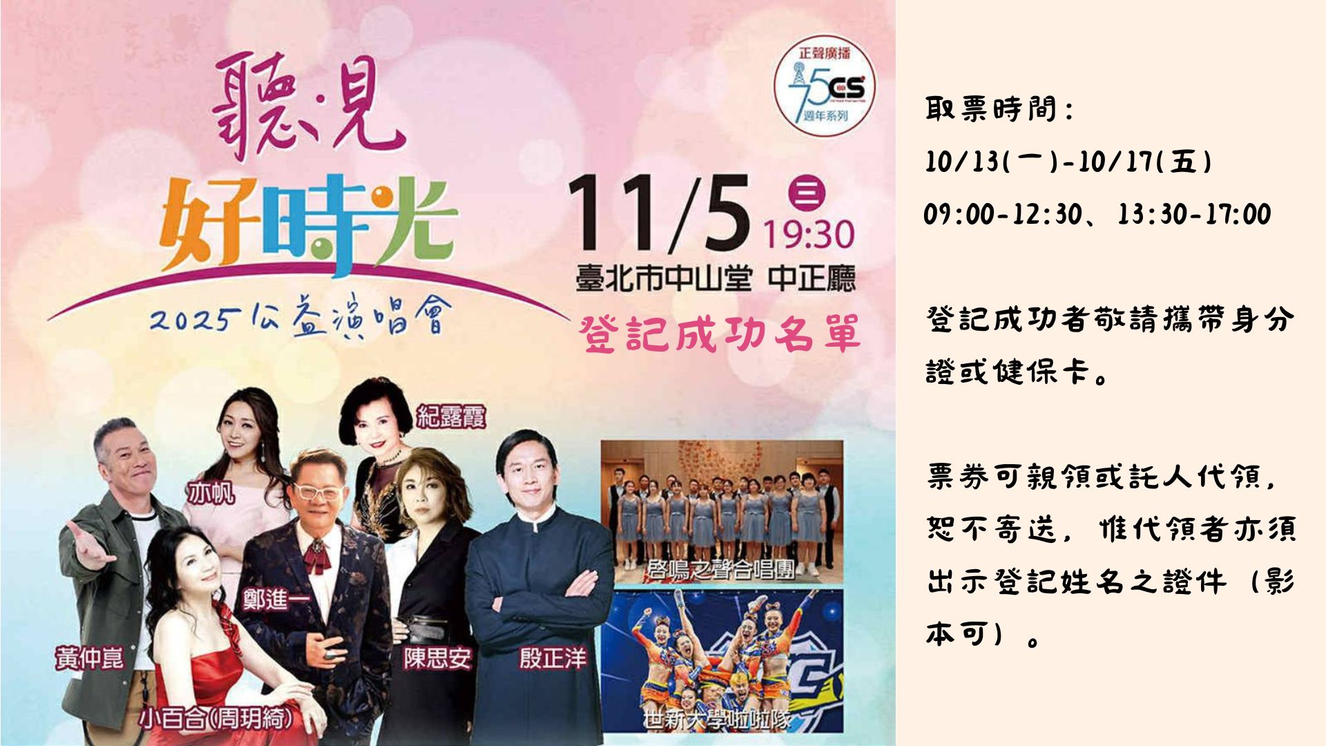 一、 活動宗旨:(一) 慶祝正聲廣播公司創立75週年,與聽眾共同歡慶這個重要里程碑。(二) 透過舉辦「正聲應援 […]