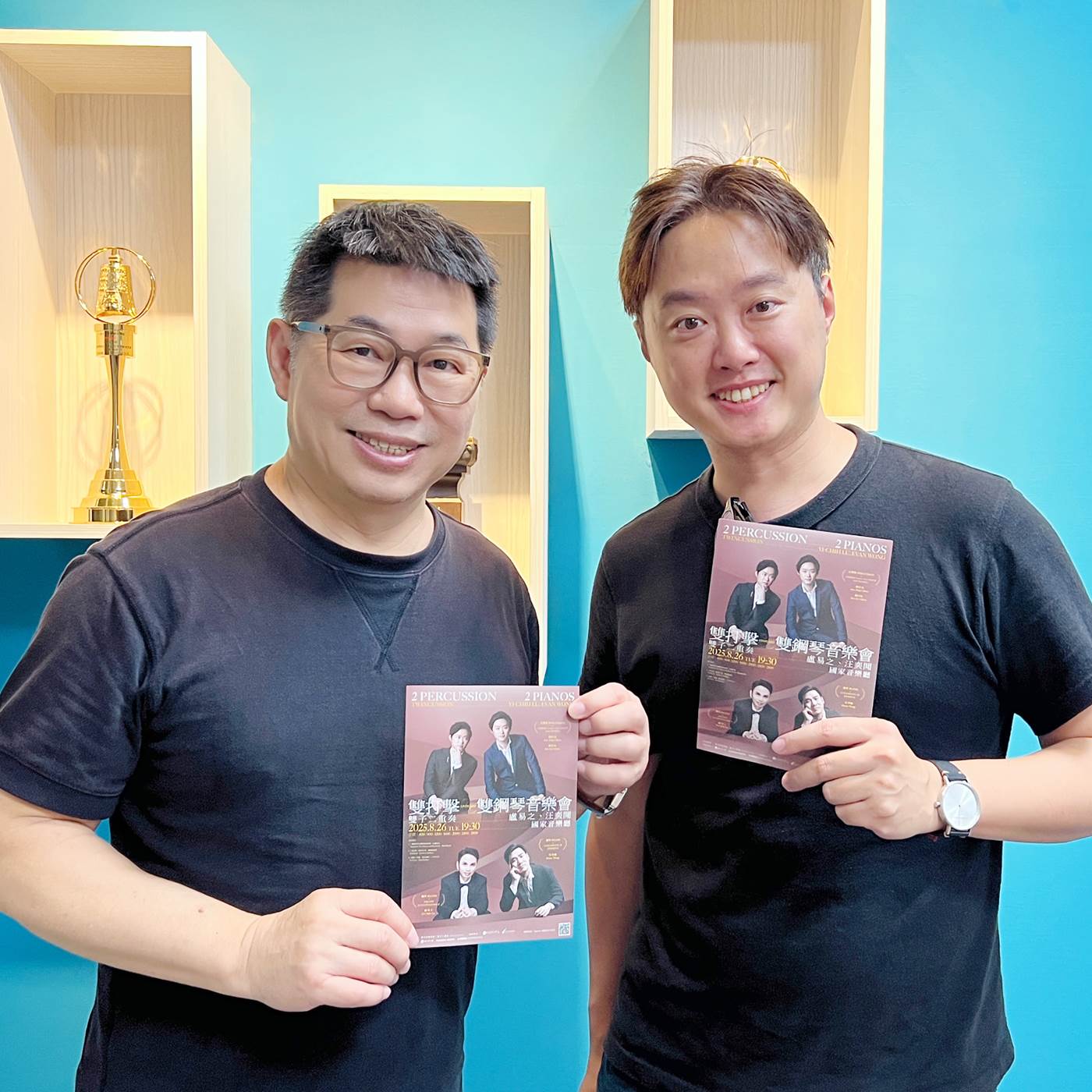雙子二重奏Twincussion由雙胞胎打擊樂家簡任廷與簡任佑組成,曾獲選美國國務院「Center Stage」計畫,活躍於歐美舞台,並曾獲第34屆傳藝金曲獎「最佳編曲獎」。簡任廷興奮地分享,他們近期入選華盛頓藝術協會 2025/26 樂季藝術家,與馬友友、五?綠等世界級音樂家同列樂季演出名單,今年年底將於美國巡演。