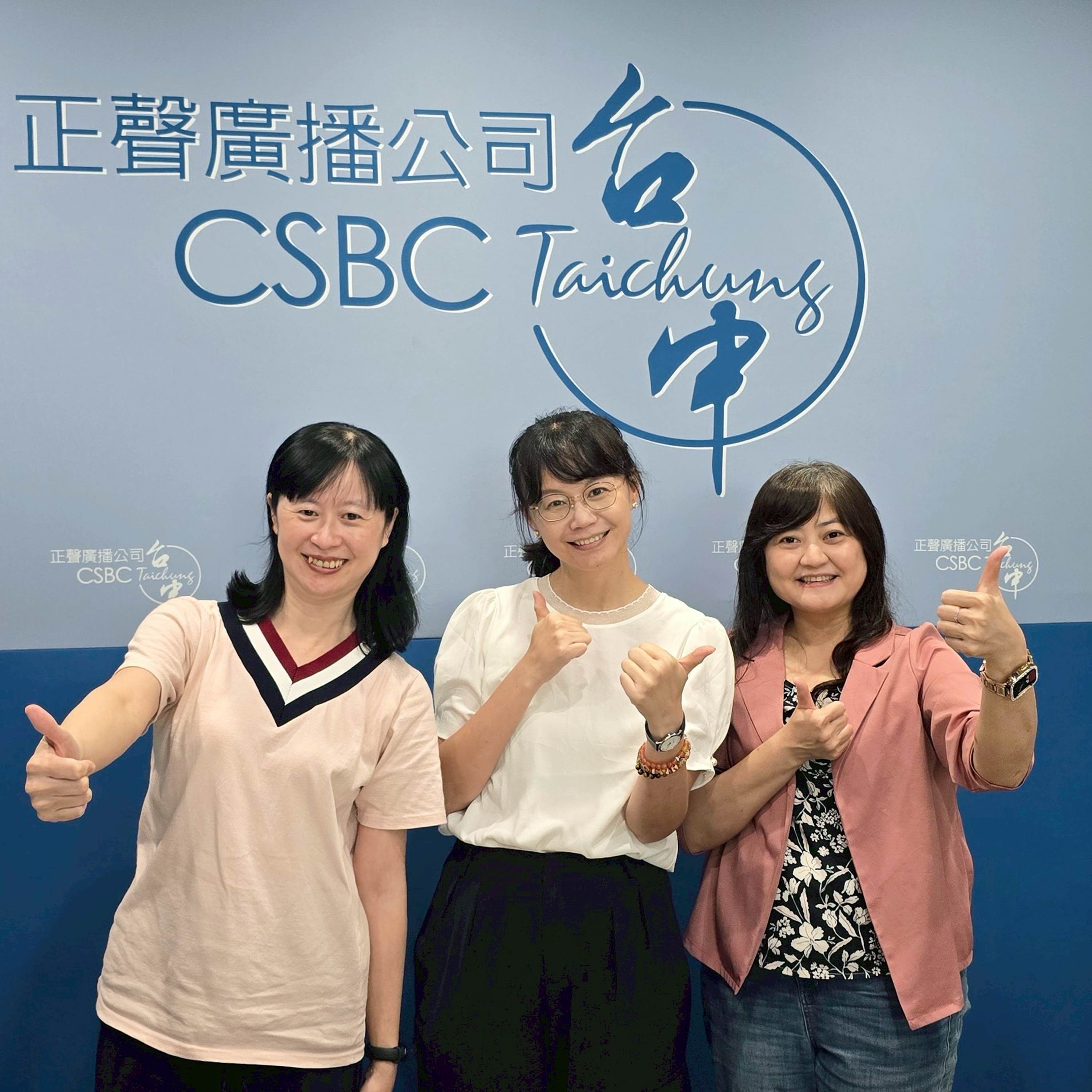 主持人與國立空中大學台中學習指導中心廖紋淑主任與陳雅意行政經理合影